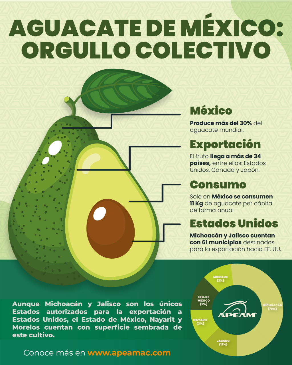 - México produce más del 30% del aguacate mundial, lo que lo convierte en el líder global del sector.
