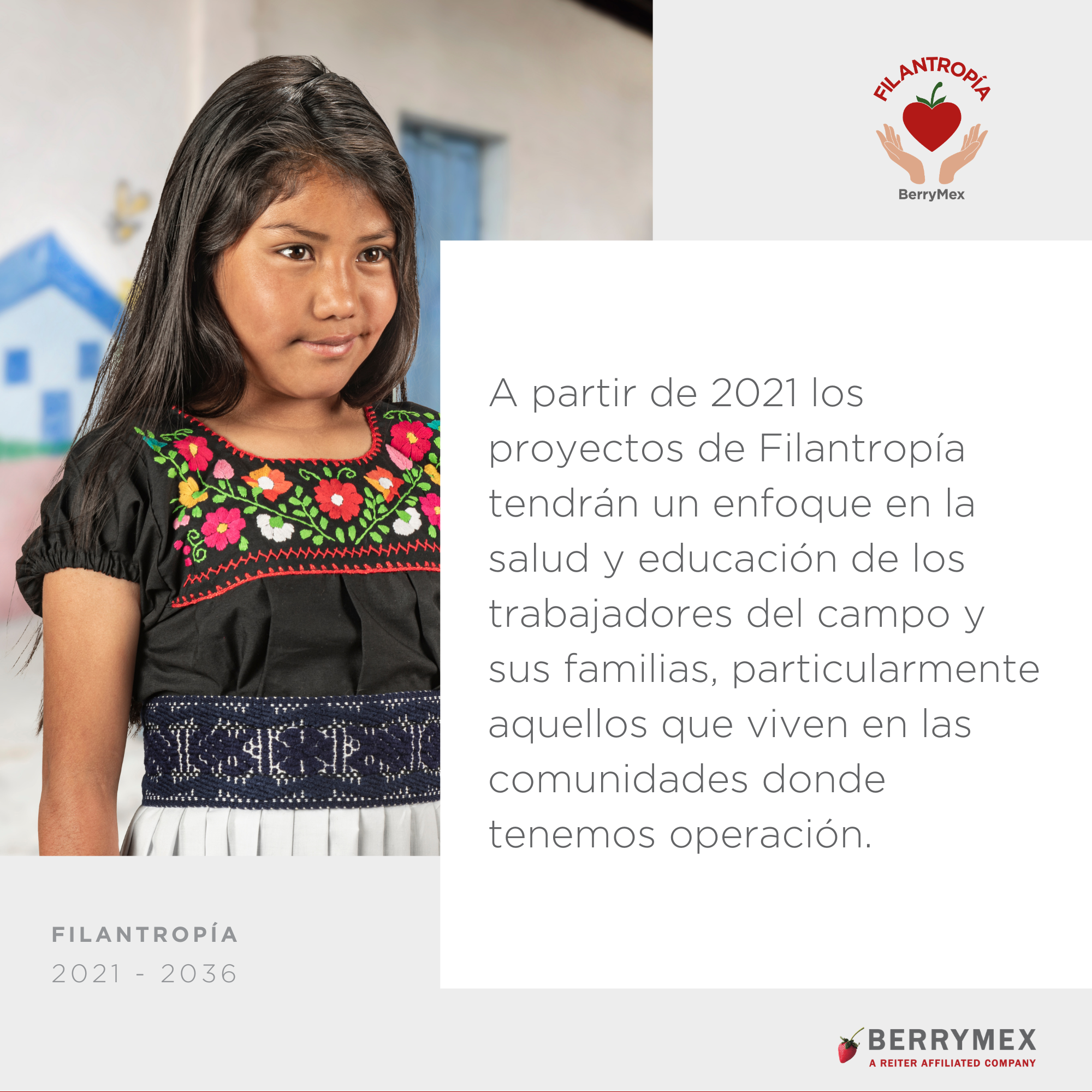 A partir del 2021, los proyectos de Filantropía tendrán un enfoque en la salud y educación de los trabajadores del campo y sus familias, particularmente aquellos que viven en las comunidades donde operamos. Además, se buscará participar en proyectos con periodos de implementación de entre 3 y 5 años, de tal manera que se puedan medir cambios en la vida de las personas.