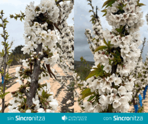 Recomendado para plantaciones establecidas de más de cuatro años, Sincronitza® se aplica una única vez por campaña, bajo condiciones favorables de temperatura y humedad, para garantizar una absorción óptima. Las observaciones en campo en huertos de cerezo y melocotonero muestran una apertura de yemas más rápida y homogénea en comparación con árboles no tratados, sin evidencias de fitotoxicidad ni alteraciones en la integridad floral.
