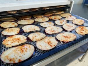 Pero ahora ¿cómo podemos aprovechar desde casa esta información? Utilizando freidoras de aire, deshidratadores u hornos eléctricos, podemos deshidratar este y otros tipos de frutos y hortalizas. Se sugiere cortar en rebanadas delgadas y utilizar temperaturas de secado que no superen los 50 °C. De igual forma, el secado puede durar desde 24 a 72 horas, dependiendo del tipo de alimento y la cantidad de agua que contenga. Los alimentos deshidratados deben ser almacenados de preferencia en bolsas o recipientes herméticos, evitando la humedad y el calor, de esta manera nos aseguramos de que duren por más tiempo y evitamos crecimiento de microorganismos.