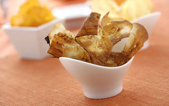 Las chips de berenjena china, a las cuales se les adicionó jugo de limón y chile en polvo bajo en sodio, fueron descritas con acidez agradable, buen sabor y muy crujientes. Además, presentaban un aspecto deseable para una botana de este tipo, con colores frescos y muy atractivos.
