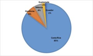 – Honduras. Ocupa la segunda posición, aunque a una gran distancia del país costarricense, con 63, 996 toneladas, pero viendo reducido su volumen en 11,831 toneladas (-15.6 %) en relación a 2020 – 2021.