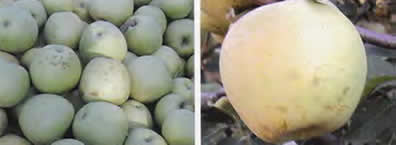 Figura 1 y 2.- Frutos de manzana con síntomas de bitter pit.