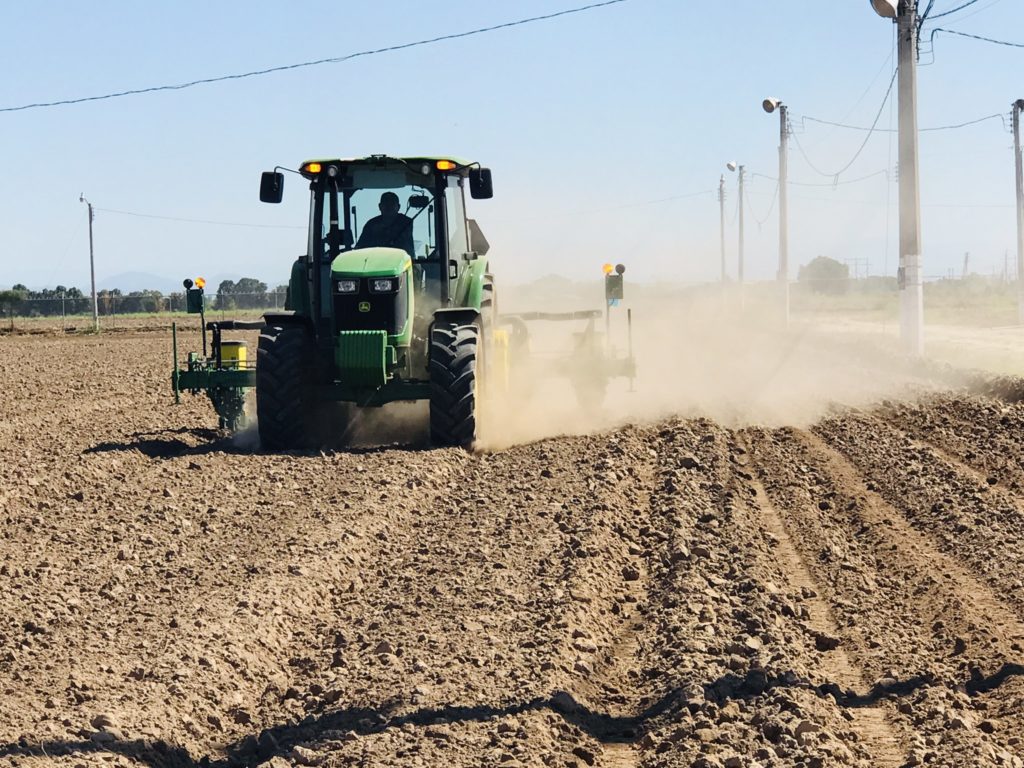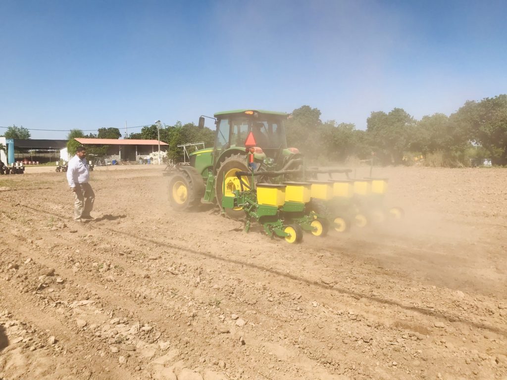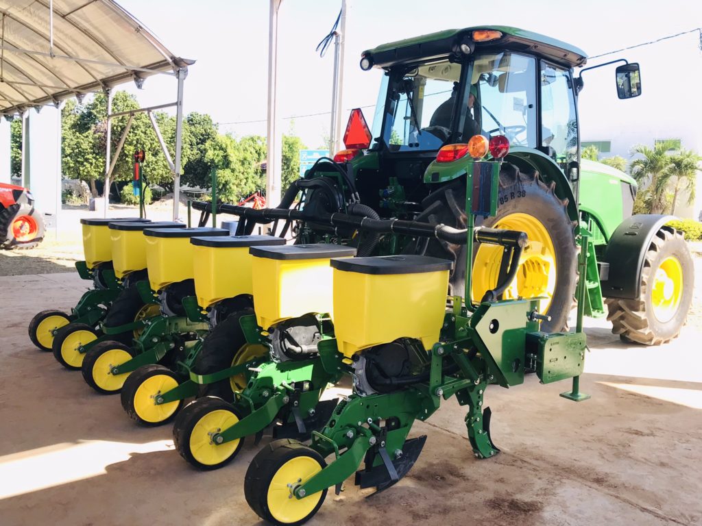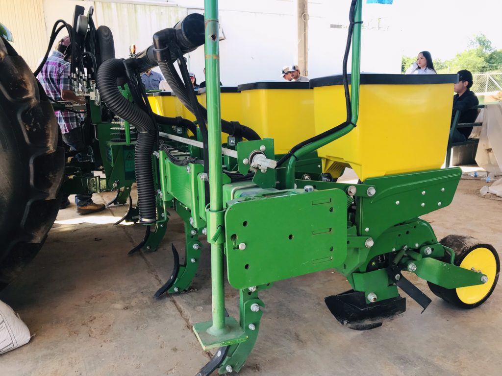 La herramienta agrícola diseñada para sembrar a utilizarse en esta ocasión fue la sembradora 1035, se presenta en dos versiones, en 4 y 6 surcos, reconocida por su calidad, resistencia y cuenta con una precisión impresionante, además se tiene con una variedad de engranes y se surte con 5 discos o platos que es maíz, frijol, garbanzo, sorgo y soya, así mismo la manipulación de sus ajustes se puede hacer de manera manual facilitando así la operación y/o ajuste requerido.