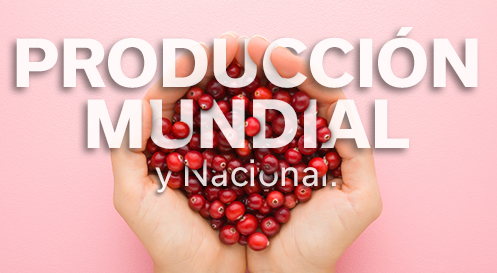 - En 2022, la producción mundial de arándanos continuó su crecimiento hasta alcanzar los 1.8 millones de toneladas, destinadas el 70 % a fruta fresca y el 30 % a procesado. De las 250 mil hectáreas de superficie, el 84 % se destinó a la producción comercial.