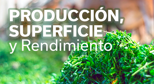 En cuanto a la superficie de cultivo, ésta ronda las 400 mil hectáreas, aunque mostrando un comportamiento más irregular en los años anteriores, mientras el rendimiento de cultivo generado ofrece un valor aproximado a 90 toneladas por hectáreas, marcando una línea de tendencia general que puede considerarse creciente.