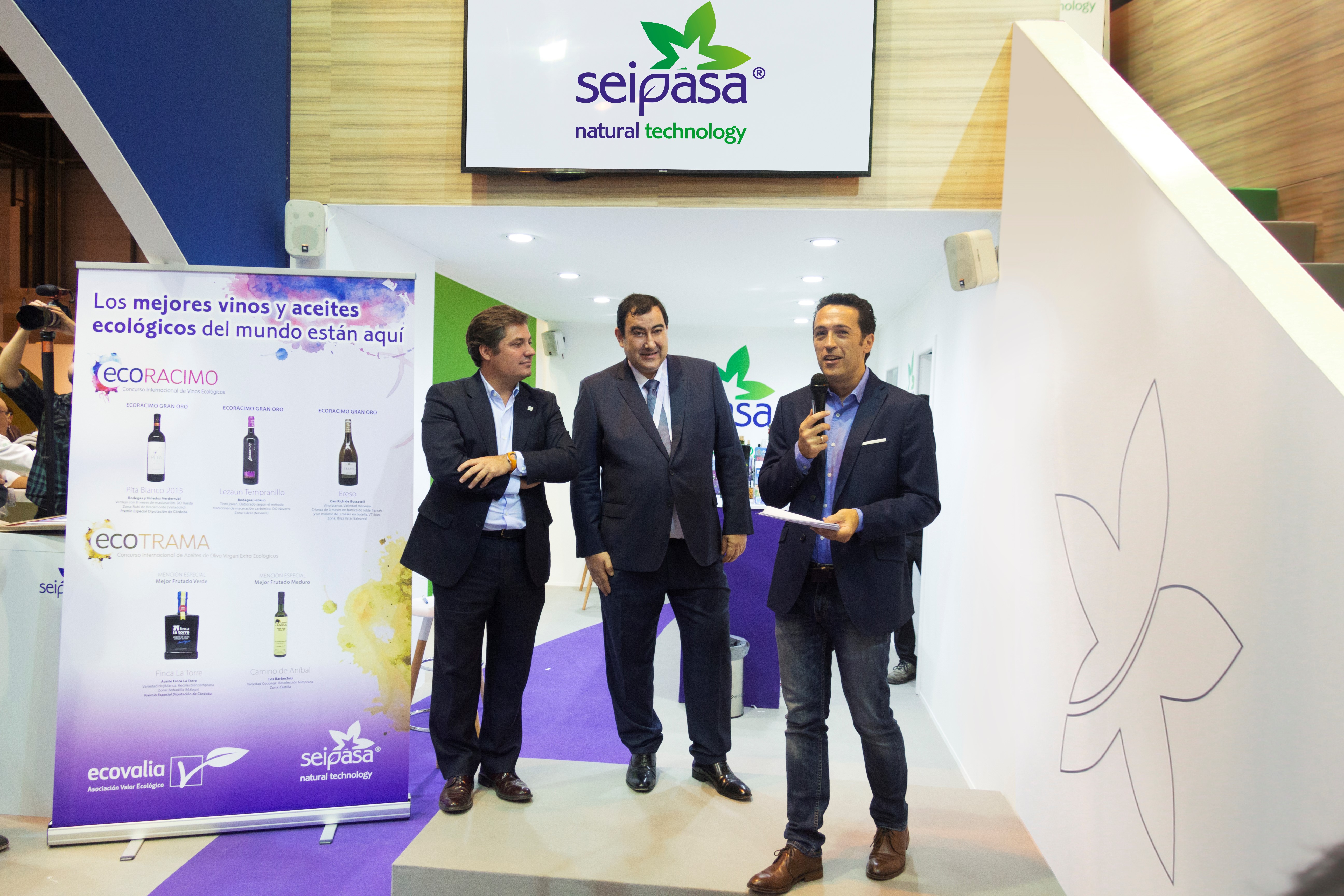 El estand de Seipasa en Fruit Attraction también ha sido escenario del acto de reconocimiento a las bodegas y almazaras ecológicas premiadas en Ecotrama y Ecoracimo, los Concursos Internacionales de Aceite Virgen Extra Ecológico y Vino Ecológico organizados por Ecovalia y patrocinados por Seipasa. Las bodegas Verderrubí (Valladolid), Lezaun (Navarra) y Can Rich de Buscatell (Ibiza), junto con las almazaras Finca La Torre (Málaga) y Los Barbechos (Albacete), han recibido una distinción como ganadoras de estos dos certámenes internacionales.