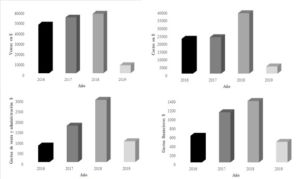 En la figura anterior se puede observar que del 2016 al 2017 la empresa presentó un crecimiento de 15% esto debido al incremento en la maquila y empaque de manzana. Al cierre del 2018 las ventas totales fueron de $57 379 mdp. En periodo analizado del año 2019 (enero-abril) aparénteme ocurrió una disminución en los parámetros estudiados, sin embargo, esto no es representativo ya que no se considera el ciclo completo de este año o de la producción de manzana.