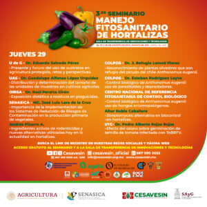 Dicho foro contará con la participación de destacados ponentes nacionales e internacionales, quienes abordarán temas clave como el virus rugoso del tomate, tratamientos en semillas y la implementación de sistemas de riesgo en la producción de vegetales, por mencionar algunos.